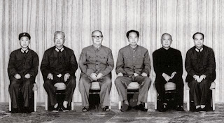 | 抓捕"四人帮"后,华国锋(右三)、叶剑英(右四)、李先念(右二)、汪东兴(右一)、陈锡联(右五)、武建华(右六)等合影 |