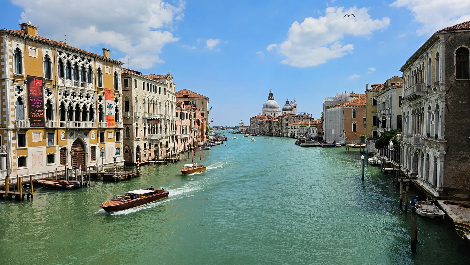 学院桥是威尼斯大运河上的四座桥梁之一,位于河道南侧出海口附近,得名于大桥南岸的学院美术馆,历史中曾多次翻修和复建。(陆霞客/大.纪.元;)