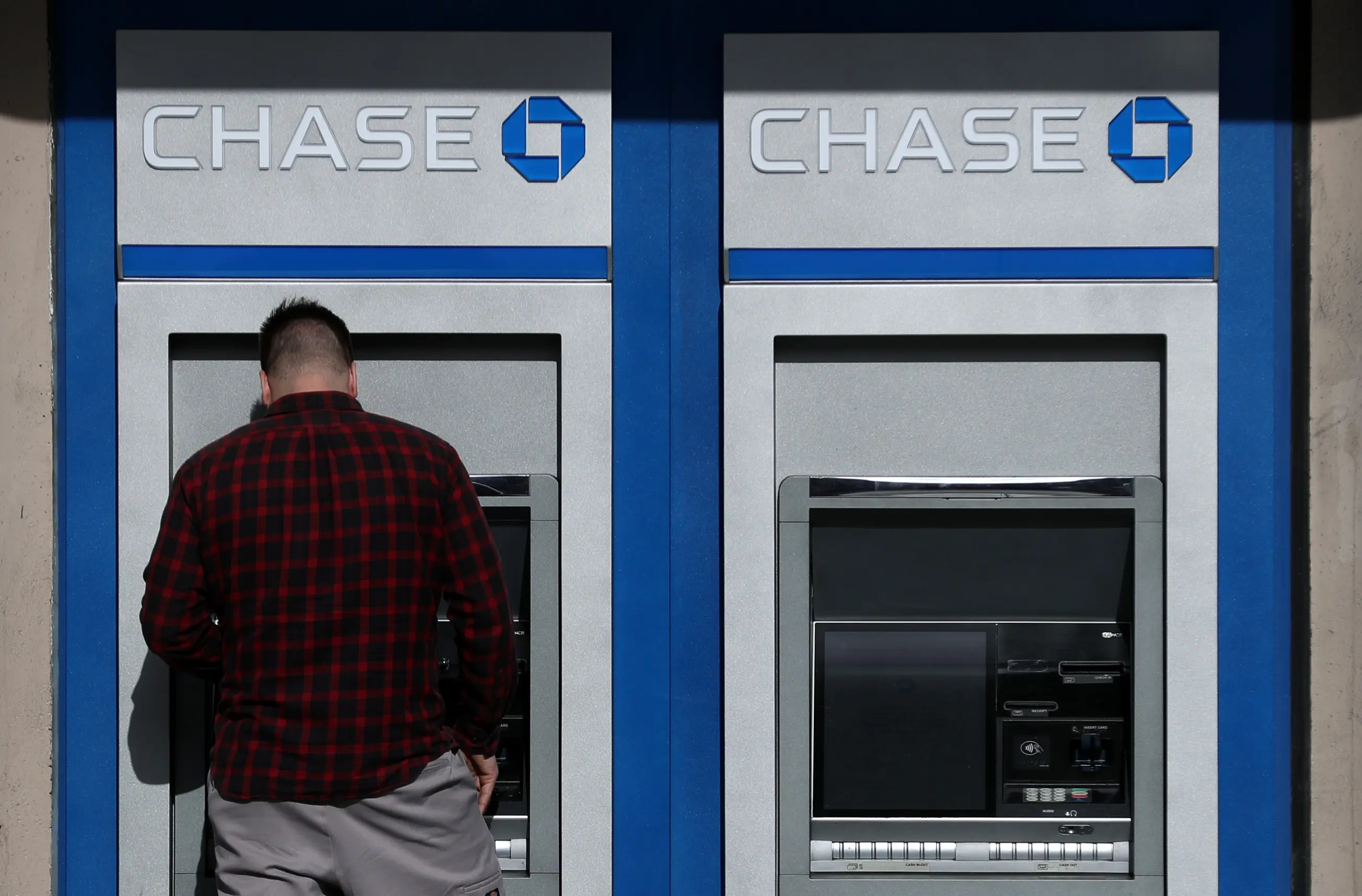 “银行尾随抢劫”是一种日益严重的犯罪手法。图为2020年1月14日,一位顾客在加州一处大通银行外使用 ATM取款机。(Justin Sullivan/Getty Images)