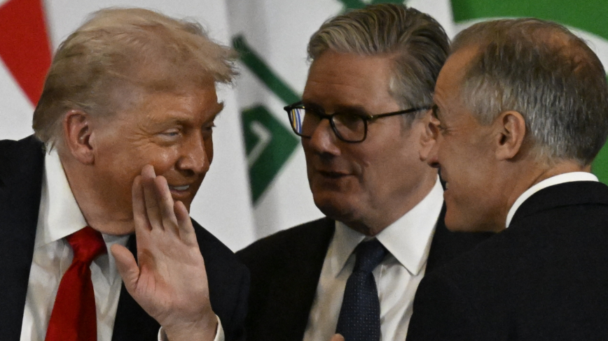 10月13日,美国总统川普与英国首相斯塔默、加拿大卡尼在加沙和平峰会上。(KHALED DESOUKI/AFP via Getty Images)