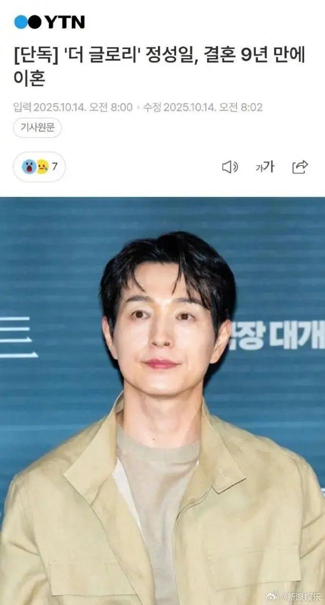2025年10月14日,郑成日经纪公司发布声明,确认其与圈外妻子结束9年婚姻关系(2016年结婚至2025年),引发热议。