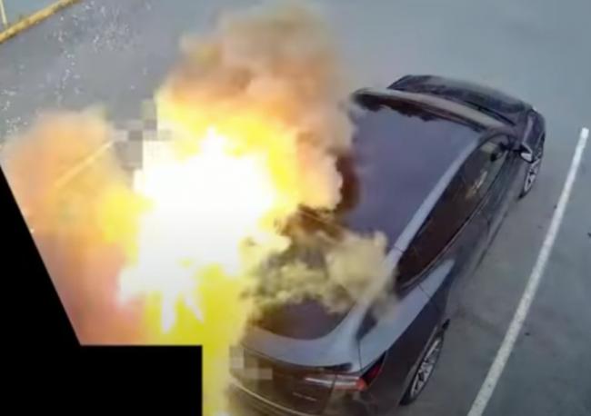 视频显示,爆炸发生后司机被炸飞倒地,他的配偶立即下车查看情况。