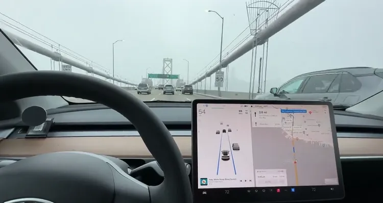 特斯拉“自动辅助转向”功能启动中。翻摄自X