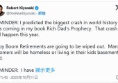 畅销书“富爸爸穷爸爸”作家罗伯特・清崎10月12日在X发文,表示他所预言的史上最大股灾将在今年降临,建议投资人应持有白银与乙太币。