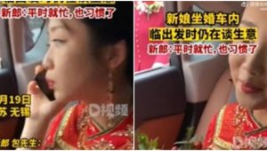 - 抽空结个婚?江苏新娘坐礼车竟“拿手机谈公事” 新郎:习惯了(图)