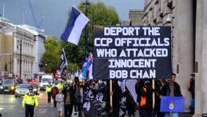 - 英国港人游行集会 “谴责中共领事馆人员袭击和掳走和平示威者”(图)