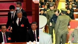 - 胡锦涛被架离镜头遭审查 胡试图拿走习*近*平文件(图)