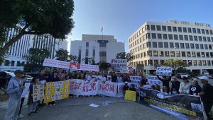 - 洛杉矶中领馆外现集会 声援北京四通桥抗议者(组图)