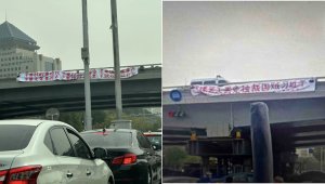- 北京出现抗议横幅事件 多角度视频图片曝光