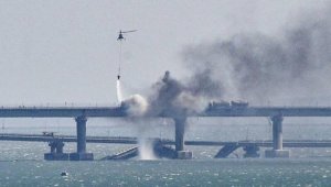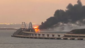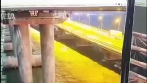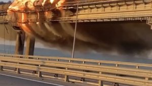 - 克里米亚大桥爆炸 桥面烧断坍塌入海(图)