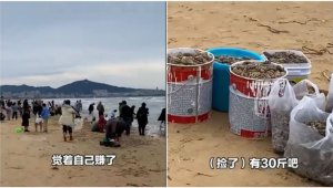 - 烟台海滩出现“免费活虾”大婶狂检30斤回家!专家揭反常真相(图)