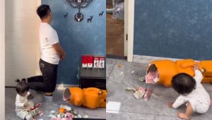 - 女儿打破巨大公仔!下秒爆出“满地钞票” 妈不气了:老公你过来(图)