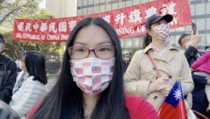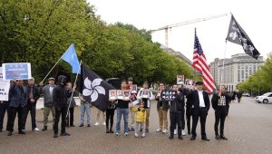 - 华府港人于“十一”冒雨示威 白宫前挥黑洋紫荆旗反对中共政权(图)