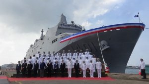 - 台湾首艘自造万吨级两栖作战舰交舰 可配备三十余枚防空飞弹(图集)