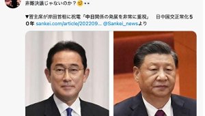 - 50周年纪念日,岸田冷待 中日贺电敷衍了事(图)