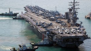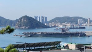 - 雷根号航母战斗群驶入釜山 中共同日24架歼-15停辽宁舰甲板(图)