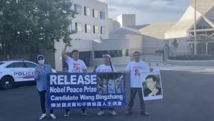 - 人权团体在中使馆前 要求中共释放王炳章高智晟(图)