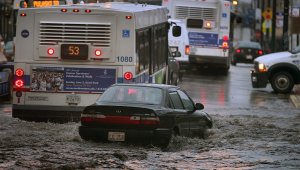 - 芝加哥遭洪水袭击 密歇根湖现7英尺高浪(图)