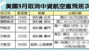 - 中美航班熔断机票涨25% 赴中可经港、泰转机(图)