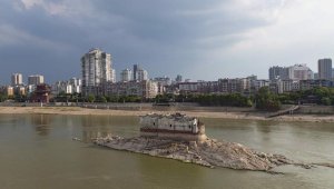 - 700年“长江第一阁”露全貌 湖北鄂州段水位破157年最低点(图)