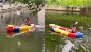 - 北京汽车限号 男子从护城河划船去上班(视频)