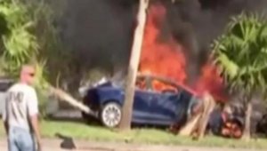 - 5宝爸特斯拉自撞 消防员打不开门活活被大火烧死(图)