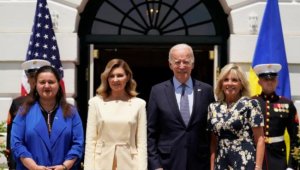 - 拜登向乌克兰第一夫人献上了一束鲜花(图)