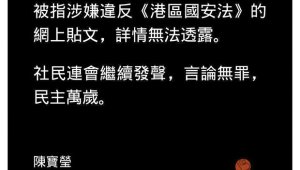 - 香港社民连被迫删脸书贴文 称被指涉违国安法(图)