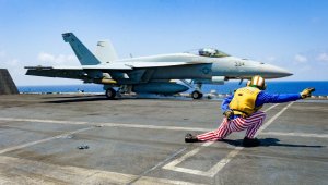 - 惊!美军F/A-18 大黄蜂被吹翻 自杜鲁门号航母甲板落海(图)