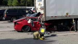 - 自动驾驶失控?特斯拉高速撞上货柜车 被“吃掉”半辆车致2死(图)