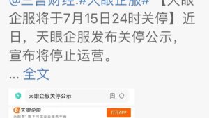 - 传天眼查旗下平台天眼企服将于7月关停(图)