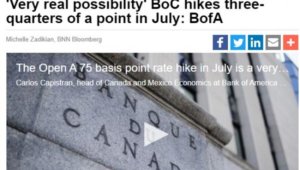- 炸了!加拿大央行7月非常可能加息75点(图)