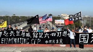 - 自由薪火相传 华裔90后10号公路旁举六四横幅(图)