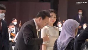- 抓拍:夫人“锐利”眼神中,韩总统慌忙放下酒杯(组图)