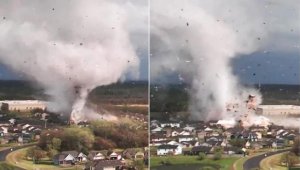 - 惊悚影片曝光美国龙卷风发威21公里千栋建筑物遭殃(图)