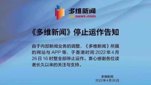 - 亲共港商大陆投资失利 旗下亲中媒体 《多维新闻》突宣布停运(图)