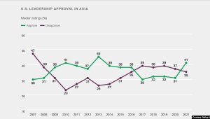 - 亚洲人对美国的看法急剧上升,而对中国的看法有所下滑(图)