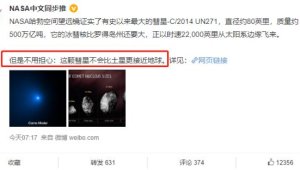 - 网上刷屏:一颗500万亿吨巨大彗星正飞向地球?(图)