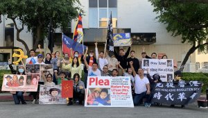 - 加州民众中领馆前烧血旗 声援遭迫害女性(组图)