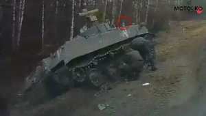 - 士兵酒驾!侵乌俄军BMD-2装甲车路边翻落…(图)