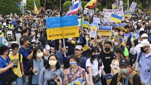 - 台湾援乌克兰大游行 在台港藏人反极权(图)
