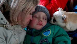 - 带哈士奇逃离乌克兰 抱着也不放弃(图集)